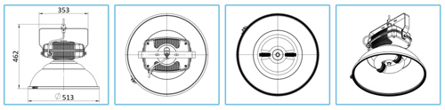 | 适配光源 Light Source | 功率(W) Wattge | 额定光通量 (lm) Rated Luminous Flux | 功率因数 PF | 净重(kg) Net Weight | 尺寸 (mm) Dimension |