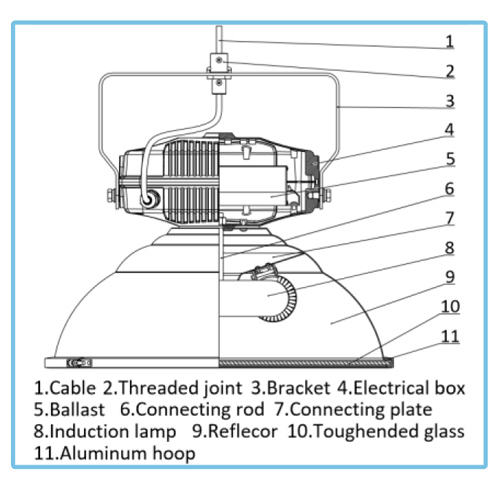 | 光源 Light Source | 卓研 无极灯80W; 100W; 卓研 induction lamp 80W;100W | 需配卓研专用镇流器 Need to match ZhuoYan specialized ballast |